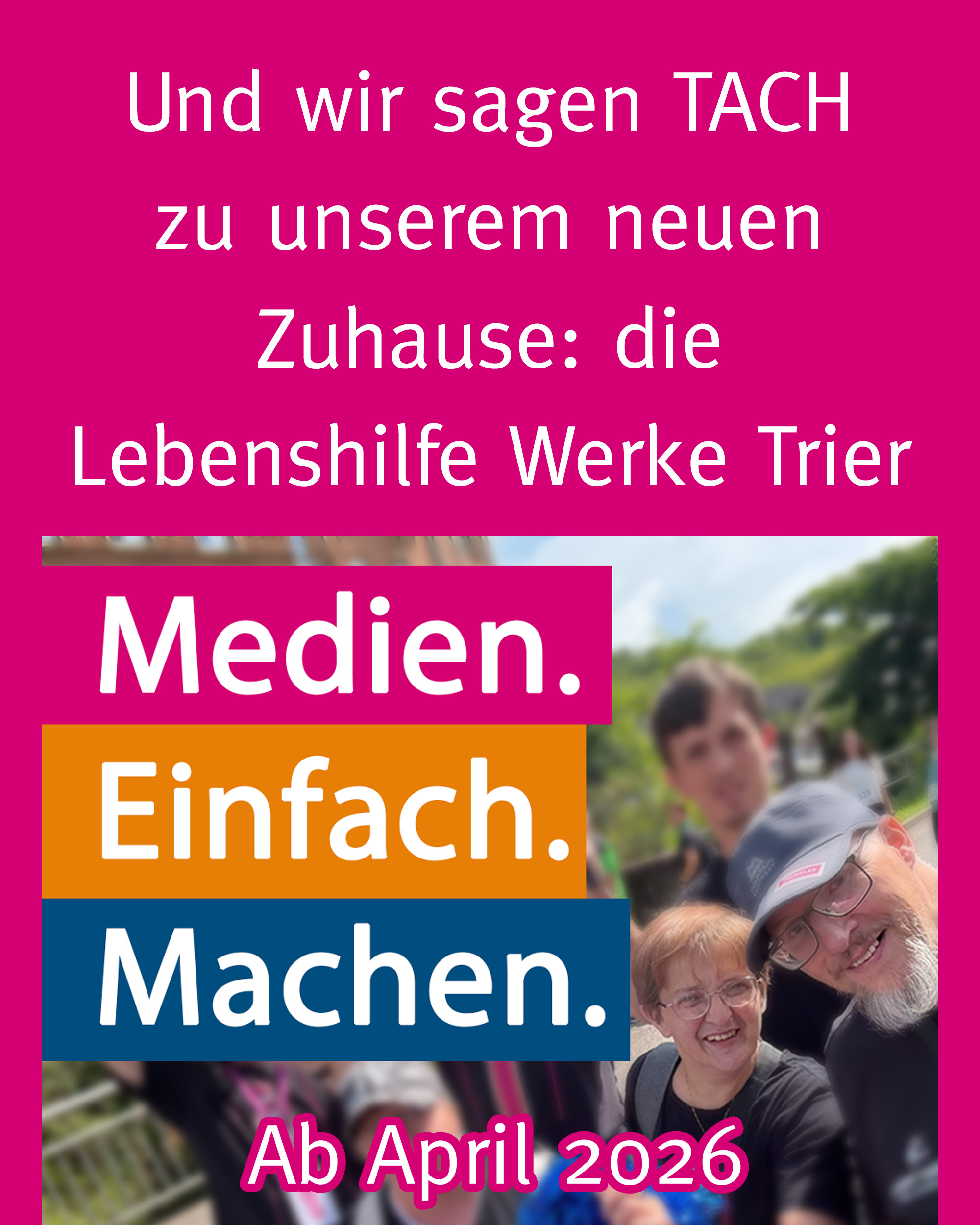 Buntes Springen zu: Schwere Sprache Vorlesen Wir ziehen um! Lebenshilfe Werke Trier ab April 2026 4. März 2026 / Redaktion Artikel teilen:teilen teilen E-Mail Fotos ansehen